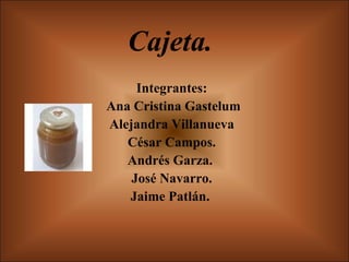 La cajeta es un dulce típico de la región de Bajío en México elaborado de forma artesanal por La Fina a partir de leche y azúcar. Se produce en cuatro variedades (envinada, quemada, fresa y vainilla) usando saborizantes como jerez, concentrado de vainilla o fresa. La empresa se fundó en 1991 y se ha convertido en un negocio exitoso que distribuye su producto a nivel nacional.