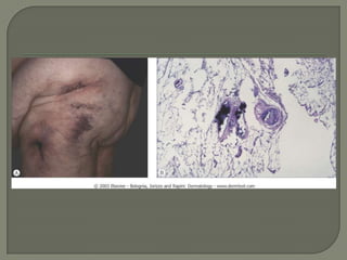 Calcifilaxia es una condición de hipersensibilidad en la que factores sistémicos como la insuficiencia renal crónica, la diabetes, la hipercalcemia y la hiperparatiroidismo pueden causar una calcificación aguda de los vasos sanguíneos pequeños, seguida de inflamación y necrosis de la piel. Esto generalmente ocurre en pacientes con enfermedad renal en etapa terminal y se manifiesta como máculas dolorosas que evolucionan a úlceras necróticas. El tratamiento se enfoca en reducir