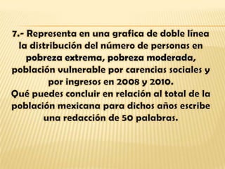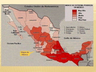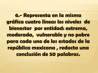 Este documento presenta información sobre la pobreza en México entre 1992 y 2006. Incluye cálculos de la incidencia de la pobreza alimentaria, de capacidades y patrimonio mediante integración numérica. También presenta datos sobre los estados de Veracruz, Hidalgo, Puebla, Chiapas y Oaxaca, que tienen altos índices de pobreza extrema.