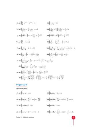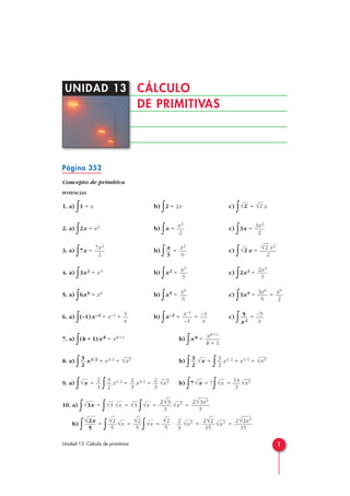 Este documento presenta una serie de ejercicios de cálculo de primitivas. En cada ejercicio se pide calcular la primitiva de funciones algebraicas, trigonométricas, exponenciales y logarítmicas. También incluye ejemplos de cambio de variables para calcular primitivas más complejas.