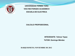 Este documento presenta los conceptos básicos del cálculo proposicional, incluyendo las definiciones de proposición, proposición simple, proposición molecular, operadores lógicos como la negación, conjunción, disyunción inclusiva y exclusiva, condicional y bicondicional. También explica las formas proposicionales, tautologías, contradicciones, leyes del álgebra proposicional, circuitos lógicos y métodos de demostración como la demostración directa y por contrarreciproca.