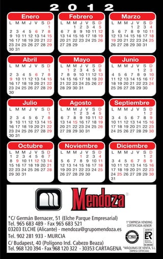 Calendario Grupo Mendoza de bolsillo para 2012