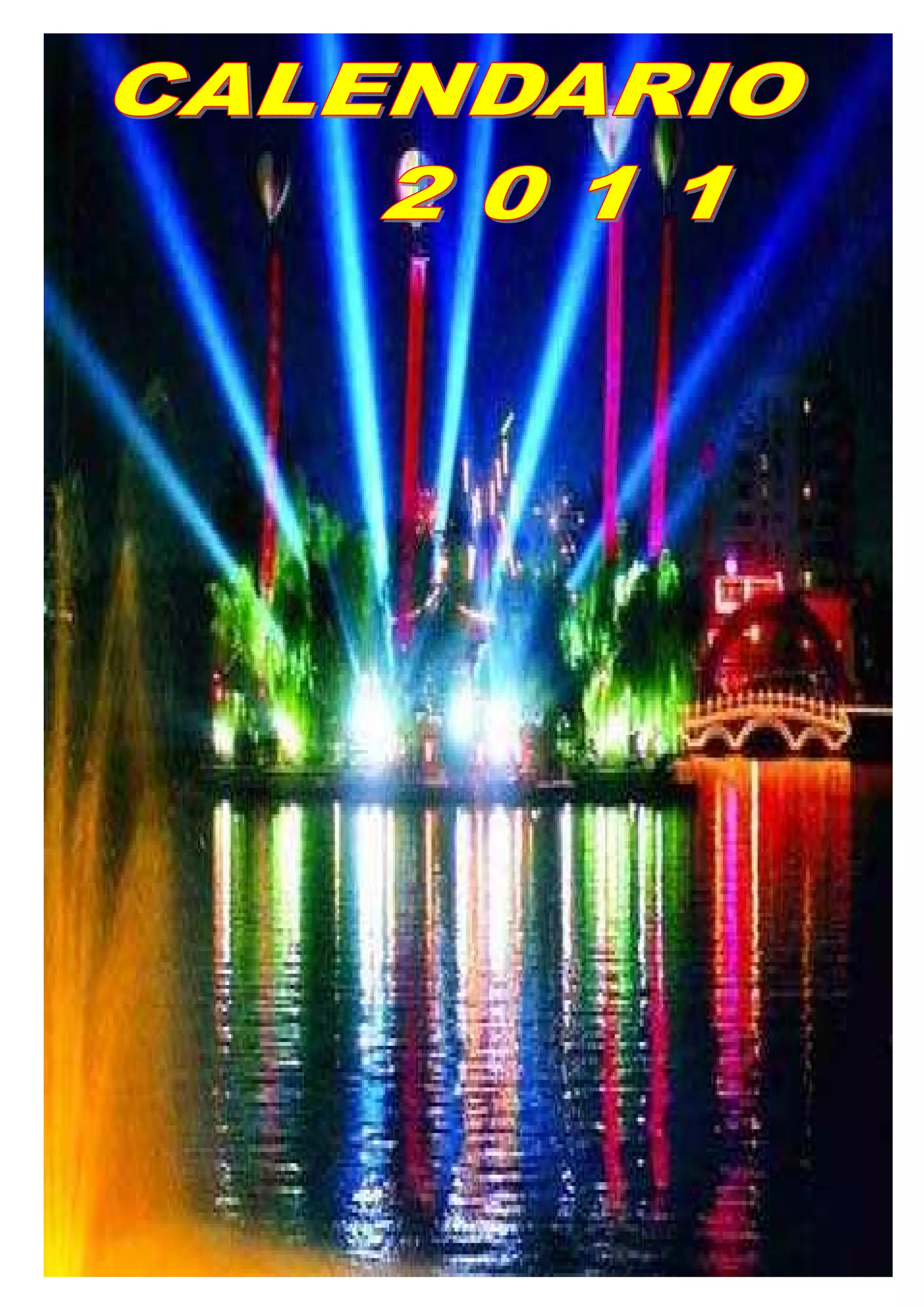 El documento presenta un calendario del año 2011, mostrando los meses de enero a diciembre con sus respectivos días de la semana. Cada mes contiene entre 28 y 31 días distribuidos en cuatro semanas, identificando los días de la semana para cada fecha.