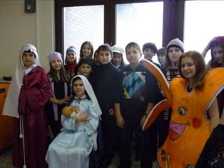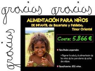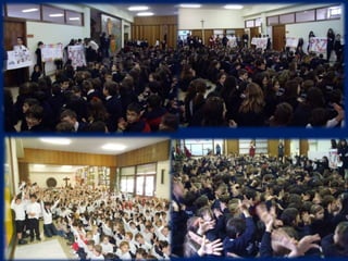 El documento describe varias actividades de caridad y celebraciones religiosas que incluyen una campaña para recaudar kilos de alimentos, un mercado benéfico, eventos para la Navidad y Semana Santa, oraciones y proyectos de recaudación de fondos como rifas y ventas de chocolate.
