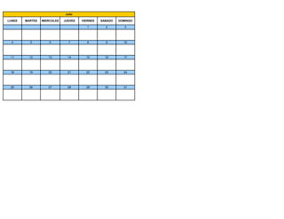 El documento presenta el calendario de evaluaciones para el primer semestre en una escuela. En marzo y abril se realizarán exámenes de inglés, ciencias naturales, matemáticas, historia y lectura. En mayo habrá evaluaciones de matemáticas, lenguaje, historia, inglés y ciencias naturales. En junio se evaluará lenguaje, historia, matemáticas, ciencias naturales e inglés.