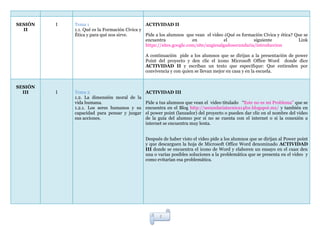 Este documento presenta el calendario de actividades para la asignatura de Formación Cívica y Ética en una escuela secundaria técnica. El proyecto busca concientizar a los estudiantes sobre la importancia de la asignatura y de la convivencia social a través de 8 sesiones que abordan temas como el significado de la asignatura, la dimensión moral humana, normas y reglas sociales. Cada sesión incluye videos, lecturas, debates y actividades prácticas como organizigramas, encuestas y presentaciones.