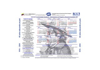 El documento lista las fechas importantes y días festivos de la Universidad Nacional Experimental Simón Rodríguez para 2014, incluyendo el carnaval, semana santa, días festivos patrios y vacaciones. También detalla los períodos académicos del año con las fechas de inscripción, inicio de clases, entrega de notas y exámenes de recuperación.