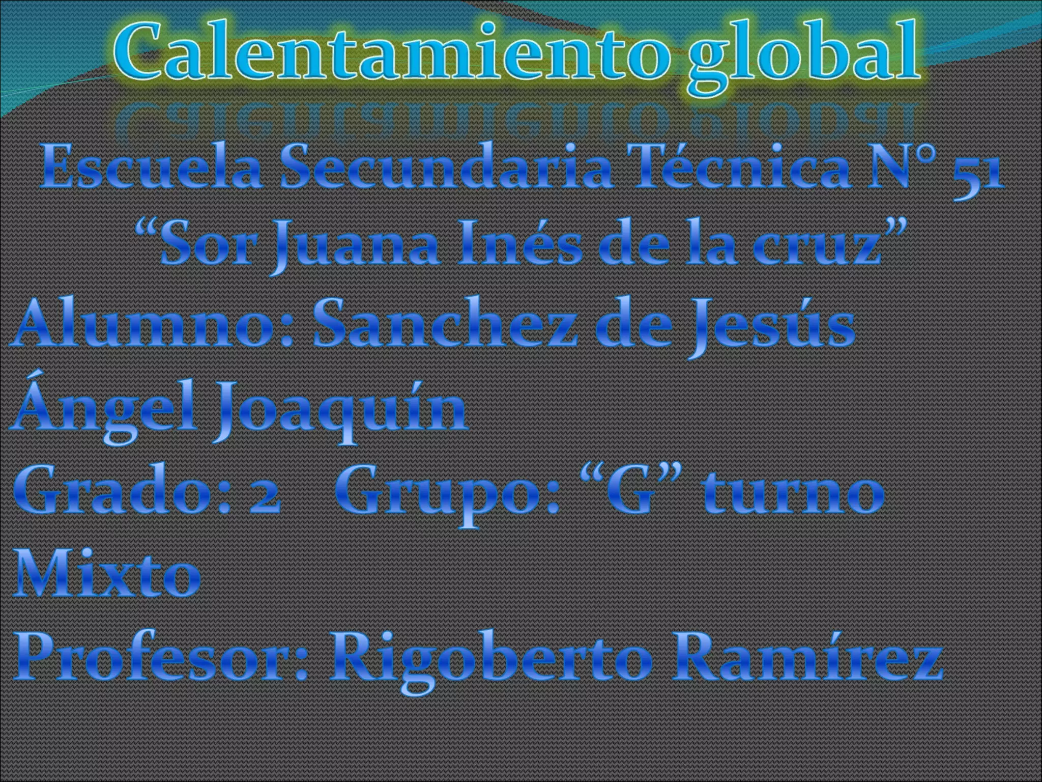 El documento describe el calentamiento global como un fenómeno causado por las emisiones humanas de gases de efecto invernadero que atrapan el calor en la atmósfera. Esto está derritiendo los casquetes polares y glaciares a nivel mundial, haciendo subir el nivel del mar. Entre 2003-2010, se perdieron alrededor de 4.3 billones de toneladas de hielo, equivalentes a unos 12 milímetros de subida del nivel del mar. El documento enfatiza la necesidad de reducir la contaminación para detener