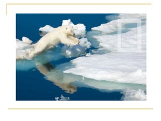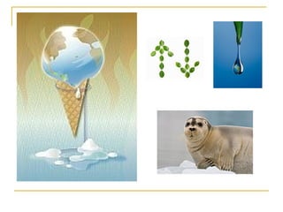 El documento explica el problema del calentamiento global causado por los gases de efecto invernadero liberados por las actividades humanas, y sus posibles consecuencias como el aumento del nivel del mar, migraciones masivas y extinción de especies. También analiza los esfuerzos institucionales y la responsabilidad individual para mitigar este problema ambiental global.