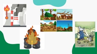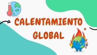 El calentamiento global es el aumento de la temperatura de la Tierra causado principalmente por la emisión de gases de efecto invernadero debido a la actividad humana como la quema de combustibles fósiles y la deforestación. Algunas consecuencias incluyen el derretimiento de los glaciares, cambios en el ciclo hidrológico y escasez de alimentos.
