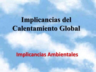 El documento describe cómo la actividad humana altera los ciclos naturales del carbono, oxígeno, nitrógeno, fósforo, azufre y agua, contribuyendo al calentamiento global a través de cambios en la composición atmosférica y la contaminación del agua. Explica el efecto invernadero natural y sus gases, y cómo las emisiones humanas están intensificando el calentamiento global, con consecuencias como derretimiento glaciar, eventos climáticos extremos e impactos en la biodiversidad y salud humana. Finalmente,