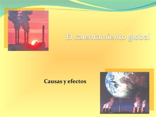 El documento trata sobre el calentamiento global y el efecto invernadero. Explica que el calentamiento global es el aumento de la temperatura promedio de la Tierra debido al efecto invernadero causado por gases como el dióxido de carbono. El efecto invernadero es un proceso natural pero se ha visto alterado por las emisiones humanas, lo que causa el calentamiento global. Este fenómeno tiene efectos como el derretimiento de los glaciares y cambios en las estaciones, afectando el clima. El documento concluye que las