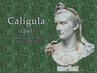 Calígula nació en el año 12 d.C. en una familia de la dinastía Julio-Claudia. Llegó al poder en el 37 d.C. tras la muerte de Tiberio y gobernó hasta que fue asesinado en el 41 d.C. en un complot de la guardia pretoriana. Se le considera un gobernante loco e inestable que cometía actos extremos como obligar a su hermana a prostituirse y nombrar cónsul a su caballo.