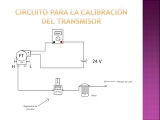 Este documento describe los 21 pasos para calibrar correctamente un transmisor de presión diferencial, incluyendo recibir la orden de trabajo, revisar la bitácora y el área de instalación, pedir una libranza, deshabilitar el transmisor desconectándolo eléctricamente, ajustar el cero a 4 mA y el span a 24 mA aplicando presión, verificar los valores intermedios y la repetibilidad, volver a conectar el transmisor eléctricamente y entregar la libranza.