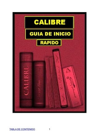 Este documento proporciona una guía rápida para Calibre, un software de código abierto para administrar libros electrónicos. Explica cómo instalar Calibre, navegar su interfaz principal, realizar tareas comunes como organizar y convertir libros electrónicos, descargar noticias, interactuar con lectores de libros electrónicos y visualizar libros.