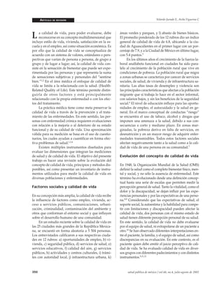 Este documento presenta una revisión del concepto de calidad de vida y los métodos para evaluarla. Explica que la calidad de vida es un concepto multidimensional que incluye factores sociales, de salud mental y física. También describe la evolución del concepto desde 1948 cuando la OMS lo definió, e inventarios 126 instrumentos para medirla. Concluye resaltando la importancia de métodos válidos y confiables para evaluar la calidad de vida debido a su naturaleza subjetiva.