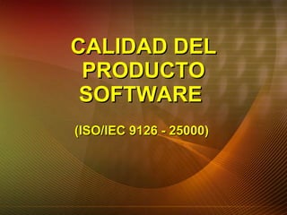 El documento presenta información sobre la calidad de software. Define la calidad de software como el grado en que un producto de software cumple con las expectativas de los clientes. Explica que la calidad implica evaluar tanto el producto final como los procesos de desarrollo, los cuales están estandarizados en modelos como ISO/IEC 9126 e ISO/IEC 25000. Estos modelos definen las características de calidad como funcionalidad, fiabilidad, usabilidad, eficiencia, mantenibilidad y portabilidad.