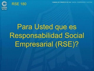 Este documento presenta una agenda sobre Responsabilidad Social Empresarial (RSE). Explica que la RSE no es filantropía, caridad o marketing social, sino la inclusión de mejores prácticas como transparencia, comercio justo y cuidado ambiental. Define la RSE como la capacidad de una empresa para responder a su entorno de forma integral. También discute los principios, definiciones, grupos de interés, evolución, áreas, efectos, guías técnicas y argumentos a favor y en contra de la RSE.