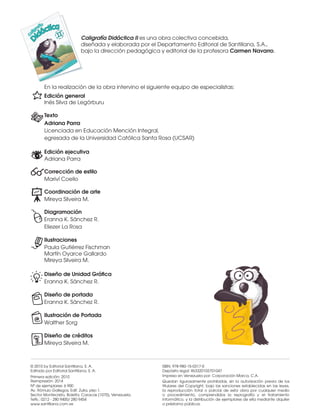 Las páginas de Caligrafía Didáctica II presentan ejercicios de grafomotricidad y lectoescritura que contribuyen al desarrollo de destrezas motrices y habilidades lectoras de los estudiantes. El texto está organizado en siete unidades didácticas, cada una con diferentes tipos de páginas como grafomotricidad, lectura, escritura espontánea y reescritura. El objetivo es reforzar las habilidades lectoras e impulsar la participación activa de los estudiantes en su proceso de