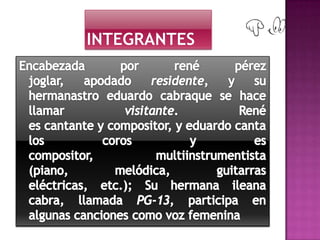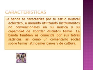 Calle 13 combina diversos géneros musicales como jazz, bossa nova, salsa, cumbia, tango y electrónica en sus canciones. El cantante Residente se resiste a etiquetar su música de Calle 13 en un género específico, prefiriendo describirlo como un estilo urbano y llano.