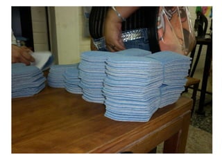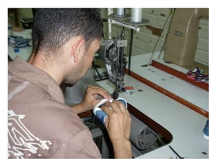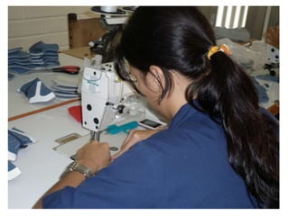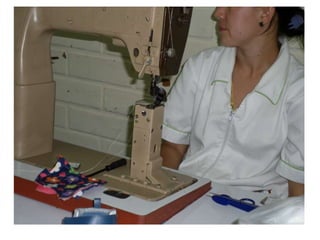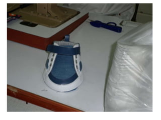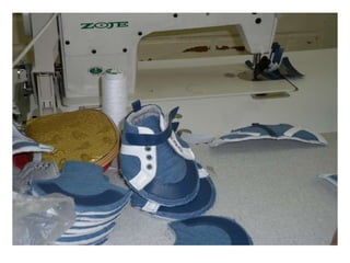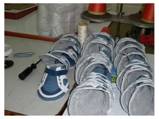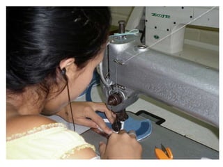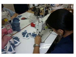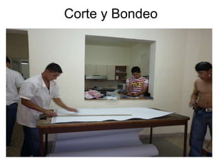 El documento describe las etapas de producción de telas que incluyen corte y bondeo, secado de la tela después del bondeo, troquelado, ensamble y empaque.