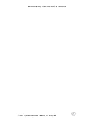Este documento presenta una metodología para caracterizar el tránsito vehicular mediante el uso de "espectros de carga", los cuales muestran la distribución de pesos de los diferentes tipos de ejes de vehículos de carga. Se describen las estaciones móviles de pesaje que permiten medir los pesos en tiempo real y calcular los espectros de carga. Finalmente, se muestran ejemplos de espectros de carga medidos en carreteras mexicanas, notando que existe un alto nivel de sobrecargas en los ejes tán