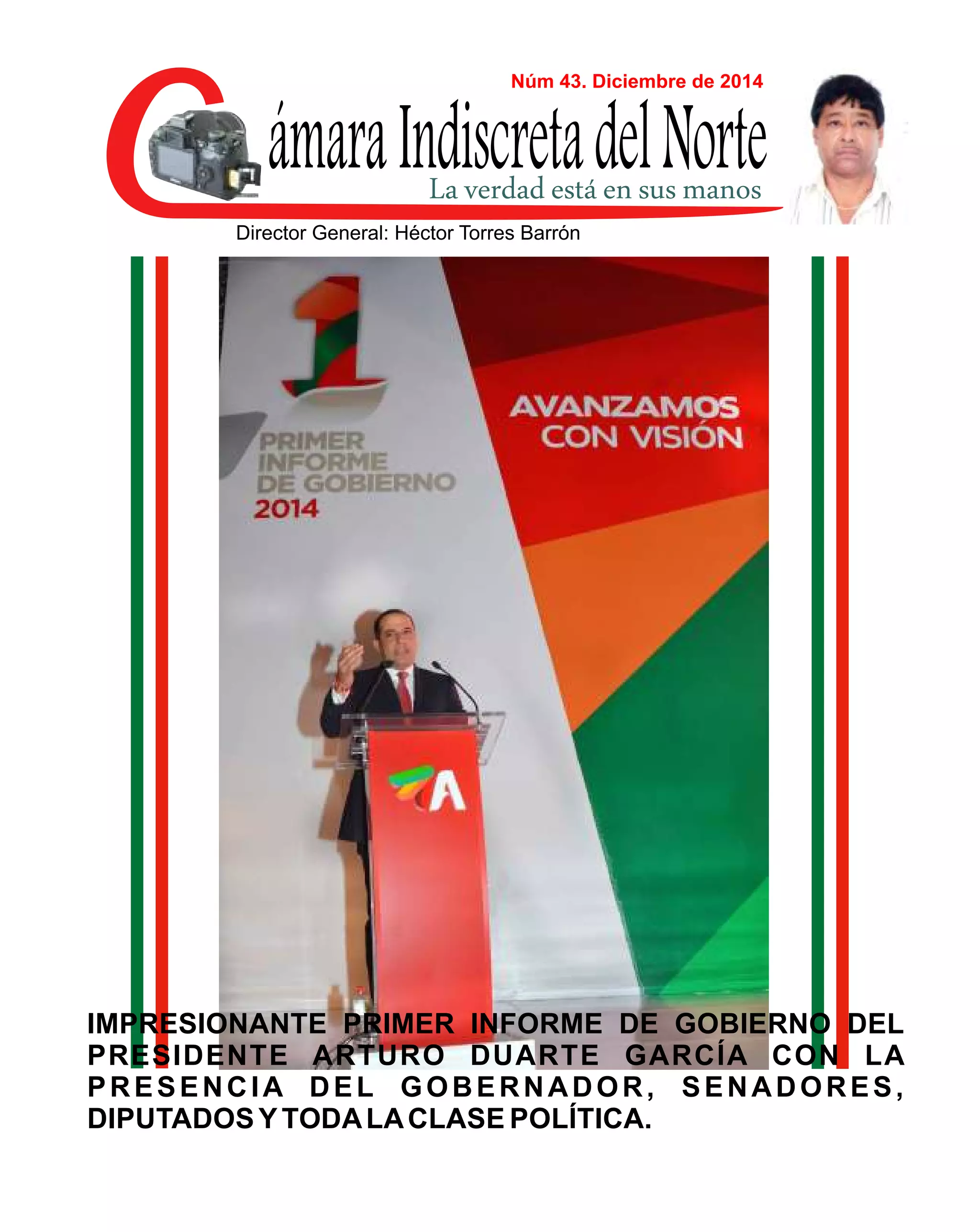 El documento presenta un resumen del primer informe de gobierno del presidente municipal Arturo Duarte García en Ahome, Sinaloa. Se destaca que Ahome logró captar la mayor inversión privada en Sinaloa, representando el 43% del total en el estado. También se menciona la presencia de funcionarios federales y estatales en la inauguración de nuevas instalaciones portuarias en Topolobampo.