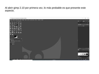El documento describe cómo cambiar la interfaz de GIMP 2.10 al abrir el programa por primera vez. Se instruye a los usuarios a acceder a las preferencias desde la pestaña de edición para seleccionar diferentes temas y configuraciones. Al elegir los temas adecuados, se puede lograr una apariencia similar a versiones anteriores del software.