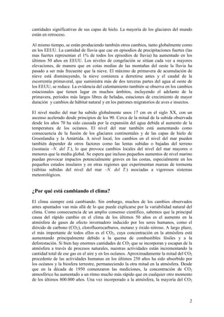 El documento resume que el cambio climático está ocurriendo de manera inequívoca debido al calentamiento del sistema climático, con aumentos de temperatura y nivel del mar. Estos cambios son causados principalmente por las emisiones humanas de gases de efecto invernadero como el dióxido de carbono procedentes de la quema de combustibles fósiles. Se espera que el cambio climático continúe en el futuro si no se reducen las emisiones de gases de efecto invernadero.