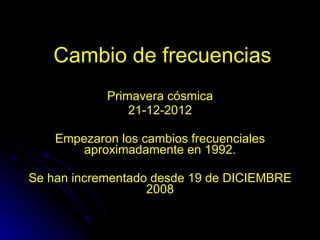 1) El documento habla sobre los cambios en las frecuencias cerebrales y los estados de conciencia que ocurren debido a un cambio cósmico que comenzó en 1992 y se intensificó en 2008, culminando el 21 de diciembre de 2012. 2) Explica las cuatro ondas cerebrales principales (beta, alfa, theta y delta) y los estados asociados a cada una. 3) Describe un método para activar el Merkaba, un vehículo energético interdimensional, a través de puntos en la cabeza asociados con los cuatro