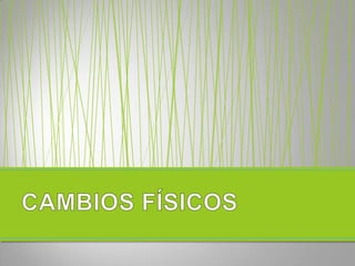 El documento explora diferentes tipos de cambios que pueden ocurrir en materiales como papel, paños, lápices y otros objetos. Explica que aunque la apariencia de un material cambie debido a factores como arrugar, mojar, quemar o oxidar, sus propiedades fundamentales como su capacidad de escribir o resistencia pueden verse afectadas. También destaca que procesos como la fermentación pueden dañar materiales como la leche si no se controlan.