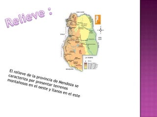 El documento describe las características del clima y la vegetación de una región con un clima árido y continental. El verano es cálido y húmedo mientras que el invierno es frío y seco. La vegetación incluye especies como el espinillo negro, quebracho y chañar brea. La fauna de la región comprende peces como la trucha, así como aves como el cóndor, ñandú y golondrina e mamíferos como el puma.