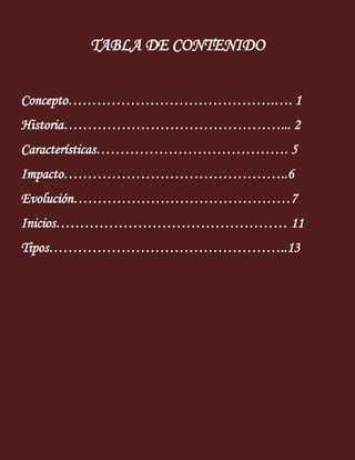 La fotografía es el arte y la técnica de capturar imágenes en una película o sensor digital. Se originó en el siglo XIX y ha evolucionado desde las primeras fotografías fijas en blanco y negro hasta las fotografías digitales a color de alta resolución de hoy. Algunos tipos comunes de fotografía incluyen retratos, paisajes, fotoperiodismo y fotografía artística.