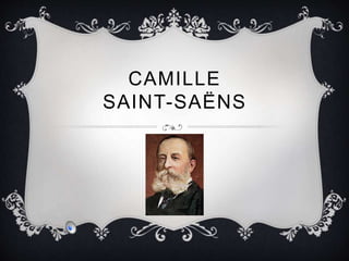Camille Saint-Saëns fue un compositor y pianista francés nacido en 1835 en París. Fue un prodigio musical desde muy pequeño, componiendo su primera obra a los 4 años y entrando al Conservatorio de París a los 13 años. Compuso cientos de obras incluyendo 13 óperas, 5 conciertos para piano, 3 para violín y varias sinfonías y poemas sinfónicos. Su obra más famosa es la ópera Samson et Dalila. Saint-Saëns fue también un polifacético erudito con intereses en ciencias