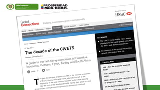 El documento presenta información sobre cómo lograr que un país sea más competitivo. Se discuten temas como la innovación, internacionalización, desarrollo empresarial, infraestructura, capital humano, articulación entre actores, y transformación productiva. Las comisiones regionales de competitividad buscan la articulación entre el gobierno nacional, actores regionales públicos y privados para lograr resultados a través de un enfoque de trabajo en equipo y colaborativo.