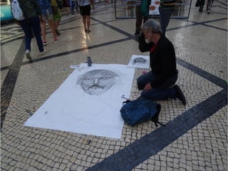 El documento describe un viaje por Lisboa, Portugal, incluyendo fotos de la Praça do Comércio, la estatua ecuestre de José I, el Arco de la Rua Augusta y el Elevador de Santa Justa. Se proporciona información histórica sobre la construcción de la Praça do Comércio y el Arco de la Rua Augusta después del terremoto de 1755. El documento concluye con detalles sobre el autor y su blog.