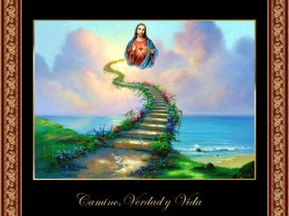 El documento explica que Jesús es el Camino, la Verdad y la Vida que el hombre busca. Al vivir como Jesús vivió y seguir su ejemplo, los hombres pueden encontrar la respuesta a sus preguntas sobre el camino a seguir, la verdad a defender y la vida eterna. Jesús guía a los cristianos hacia Dios a través de su Espíritu.