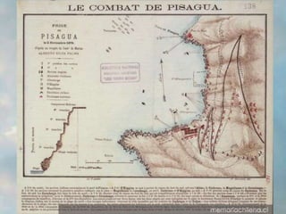 Sara Cortez informa sobre la victoria naval de Angamos, donde la armada chilena derrotó a la armada peruana en las batallas de Pisagua y Junín el 8 de agosto de 1879. La flota chilena de 1300 hombres derrotó a la flota peruana más grande de 9500 hombres a través de un asalto y bombardeo que forzó la retirada peruana, resultando en una victoria decisiva para Chile.