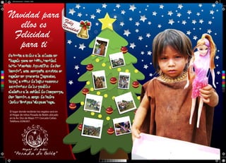 El documento invita a todos a participar en una colecta de regalos para niños de bajos recursos económicos en los pueblos cercanos a Oxapampa y San Ramón para la Navidad de 2012. Los regalos (juguetes y ropa) serán recibidos en el Hogar de niños Posada de Belén en Callao y la campaña está a cargo del Padre Carlos Enrique Vásquez Vega.