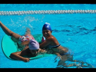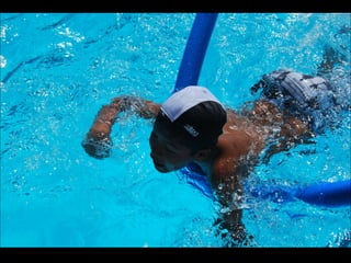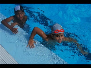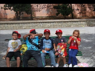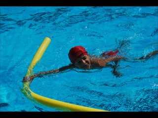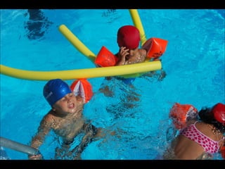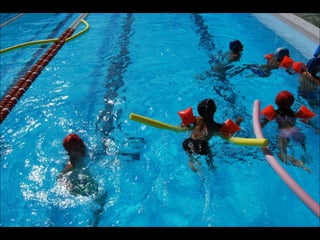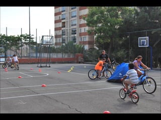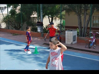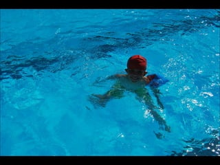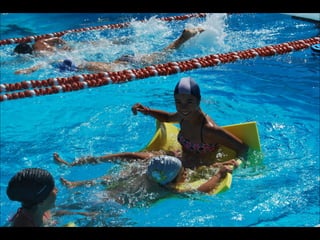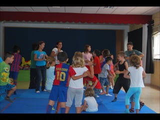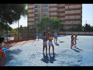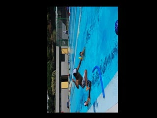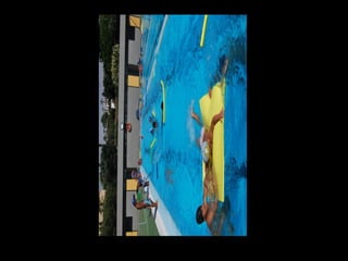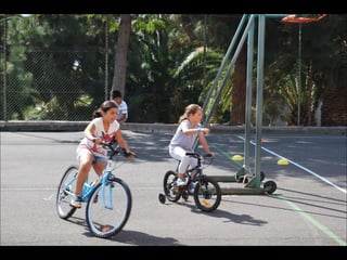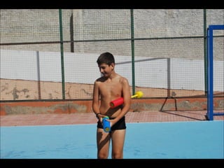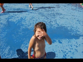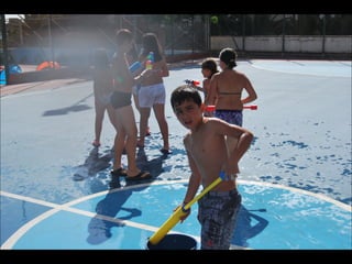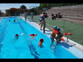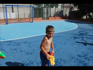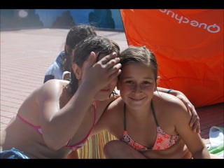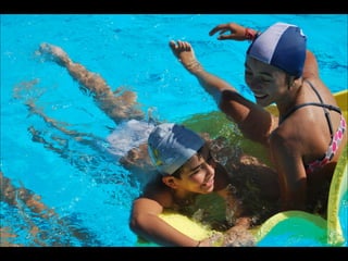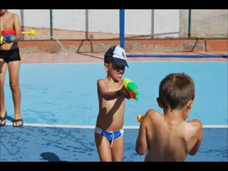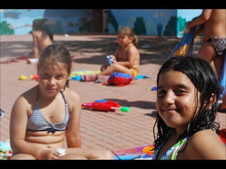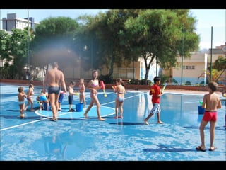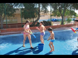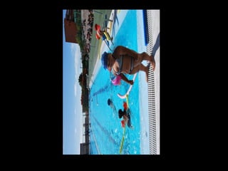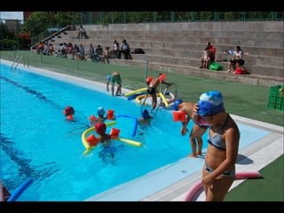 El documento describe los primeros días de un campamento de verano de 2011, incluyendo un día sobre ruedas, un álbum de fotografías y un día en la piscina.