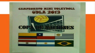 Este documento describe la organización del Campeonato de Voleibol de la Copa de Naciones para Segundos Medios de la UDLA en 2013. Se establecen varias comisiones de trabajo, incluyendo coordinación general, gestión, planificación, comunicaciones, logística y técnica, para organizar el evento. Cada comisión tiene responsabilidades específicas como invitar equipos, fijar fechas, diseñar materiales promocionales, preparar el equipamiento deportivo, y difundir las reglas del campeonato. Al finalizar, se