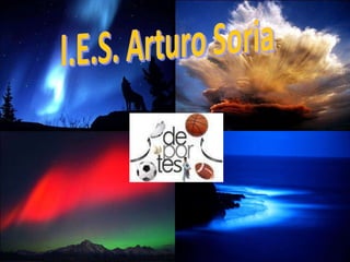 El documento describe la participación del IES Arturo Soria en campeonatos escolares de deportes desde 2004. Comenzaron compitiendo en voleibol y hockey sobre hierba, y luego añadieron otros deportes como balonmano, judo y ajedrez. Detalla sus resultados en los campeonatos de 2004 a 2009, donde ganaron varias medallas en hockey y judo. También cuenta con el apoyo de destacados deportistas a nivel nacional como Guillén y Granero.