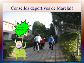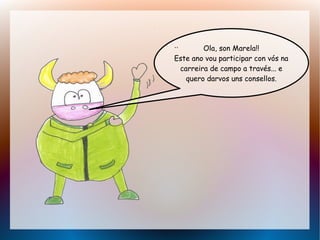 Marela ofrece consejos para prepararse físicamente antes de una carrera de campo a través, incluyendo ejercicios para preparar los músculos y articulaciones como movimientos rotatorios en los tobillos, movimientos circulares en las rodillas, inclinaciones laterales y frontales del tronco, círculos con los hombros y el cuello, además de la importancia de dosificar el esfuerzo durante la carrera y realizar estiramientos después sin producir dolor.