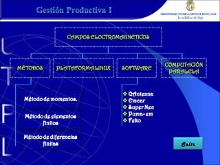 El documento describe los campos electromagnéticos generados por corrientes eléctricas variables en el tiempo y cómo se propagan. Las antenas transmiten estas ondas electromagnéticas al espacio libre de forma esférica pero no homogénea, siendo más intensas en algunas direcciones. El método de momentos se utiliza para resolver numéricamente ecuaciones electromagnéticas y simular el comportamiento de antenas.