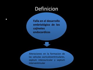 - El canal auriculoventricular es una falla en el desarrollo embriológico de los cojinetes endocardicos que causa alteraciones en la formación de las válvulas auriculoventriculares, el septo interauricular y el septo interventricular.