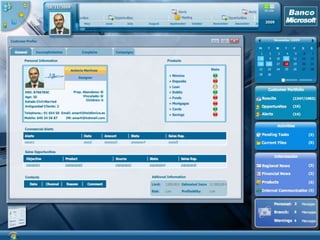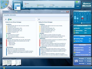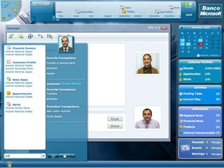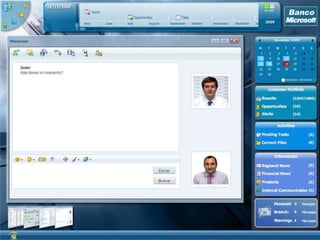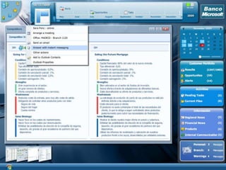 El documento habla sobre las preferencias de los clientes bancarios y los canales que usan para contactar a sus bancos. También discute cómo las instituciones financieras pueden complementar los servicios en la oficina con opciones en línea como la venta por internet, mensajería instantánea y SMS para crear una experiencia más integral para el cliente.