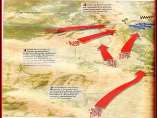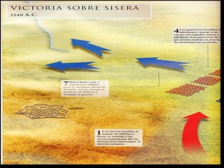 El documento describe brevemente la historia de Israel en Canaán antes y después de la conquista. Antes de la conquista, Canaán estaba habitada por varias tribus como los amonitas, moabitas y edomitas. Israel conquistó la tierra bajo el liderazgo de Moisés y Josué, derrotando a reyes como Sehón y Og. Después de la conquista, la tierra se repartió entre las doce tribus de Israel.