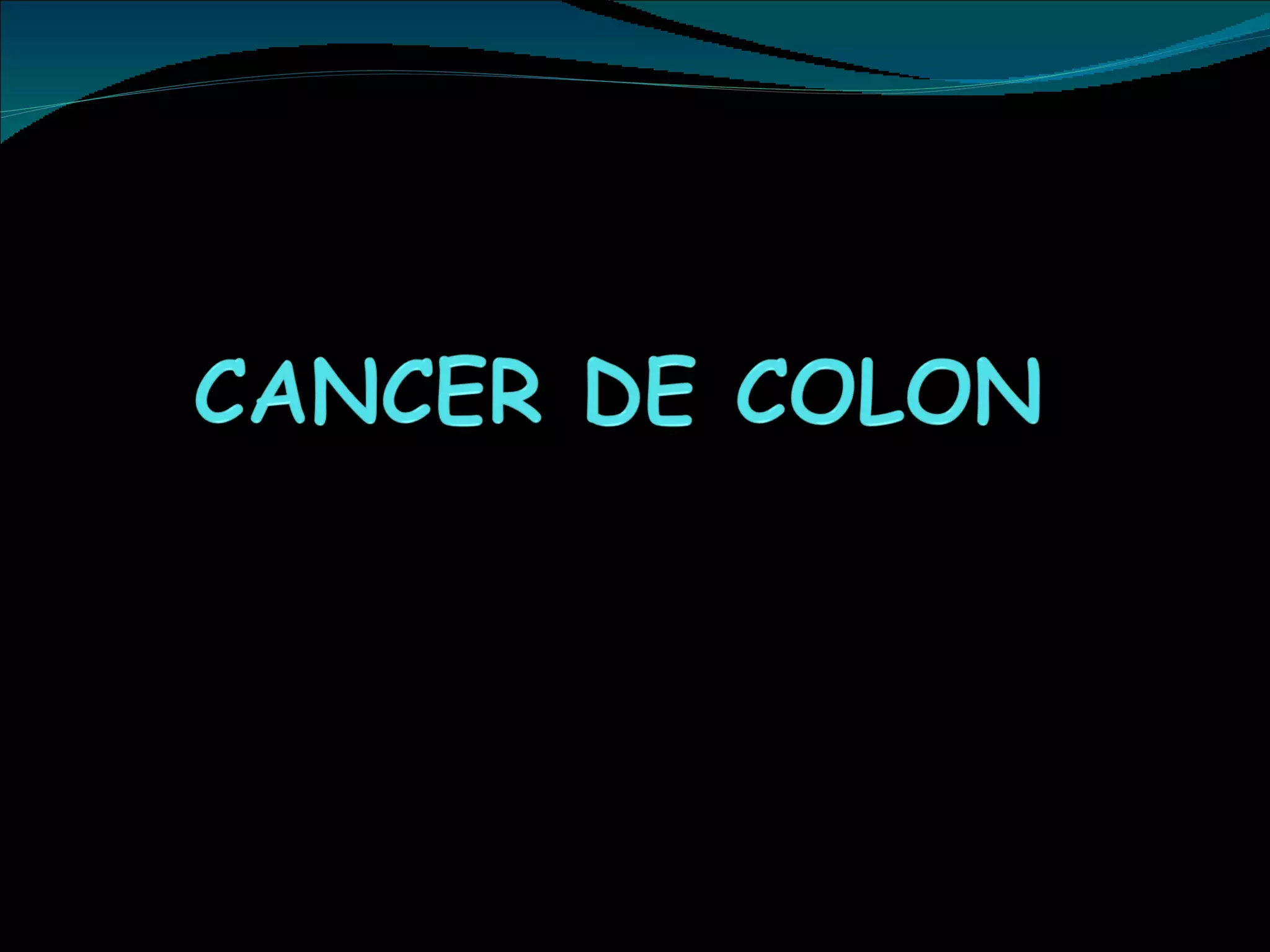 El cáncer colorrectal es la segunda causa de muerte por cáncer en países desarrollados. La dieta rica en grasas y pobre en fibra aumenta el riesgo, al igual que factores genéticos como mutaciones en los genes APC, KRAS y genes de reparación. El tratamiento incluye cirugía, radioterapia y quimioterapia, logrando controlar la enfermedad en más del 60% de los casos.