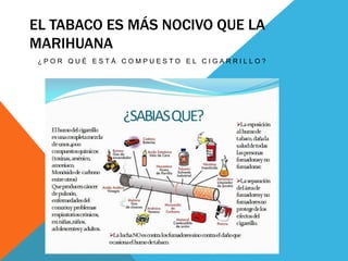 El documento discute los usos tradicionales y medicinales de la marihuana por parte de la cultura rasta y estudios recientes. La marihuana se usa regularmente en ceremonias rastafari y se considera que fortalece el cuerpo, el alma y la mente. Estudios también demuestran que la marihuana se usa para aliviar dolencias físicas como la esclerosis y artritis. Además, no se han reportado muertes por el consumo de marihuana.