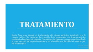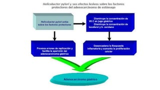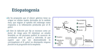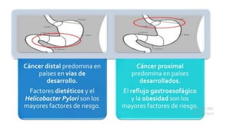 El cáncer gástrico era la causa más común de muerte por cáncer en algunos países en 1980. Aunque ahora ocupa el segundo lugar a nivel mundial, sigue siendo una de las principales causas de muerte por cáncer. Los factores de riesgo incluyen la edad avanzada, el sexo masculino, la infección por H. pylori, la cirugía gástrica previa y el tabaquismo. El diagnóstico se realiza mediante endoscopia, biopsia, TAC o resonancia magnética, y el tratamiento